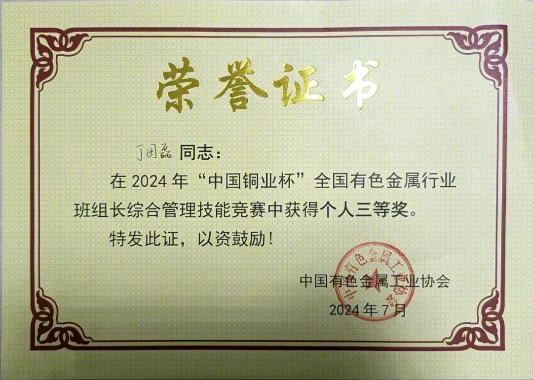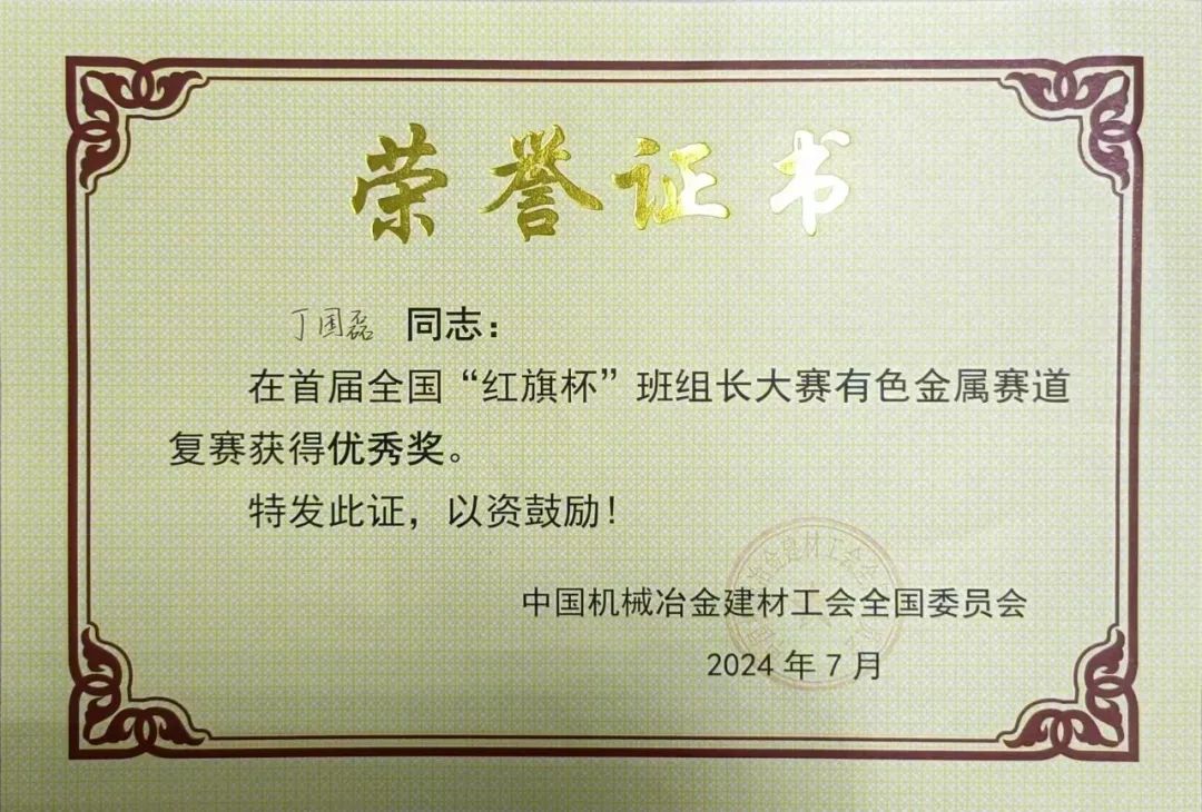 近日,首屆全國“紅旗杯”班組長大賽有色金屬賽道復賽暨2024年“中國銅業(yè)杯”全國有色金屬行業(yè)班組長綜合管理技能競賽圓滿落幕,中色東方職工丁國磊榮獲“紅旗杯”優(yōu)秀獎,并在“中國銅業(yè)杯”競賽中,榮獲三等獎。