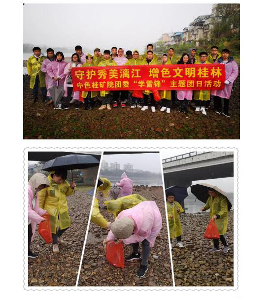 中色桂礦院團(tuán)員青年冒雨到漓江邊撿拾垃圾