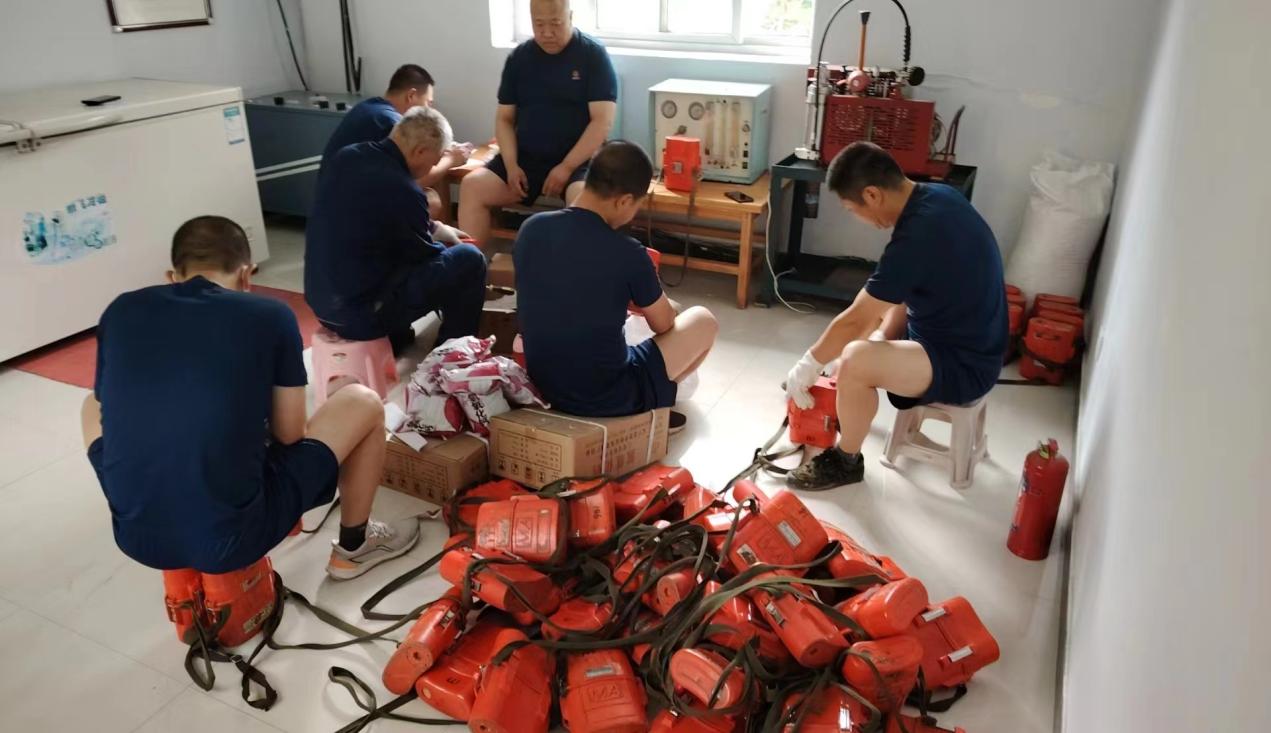 中色紅透山救護隊青年黨員正在維修井下自救器