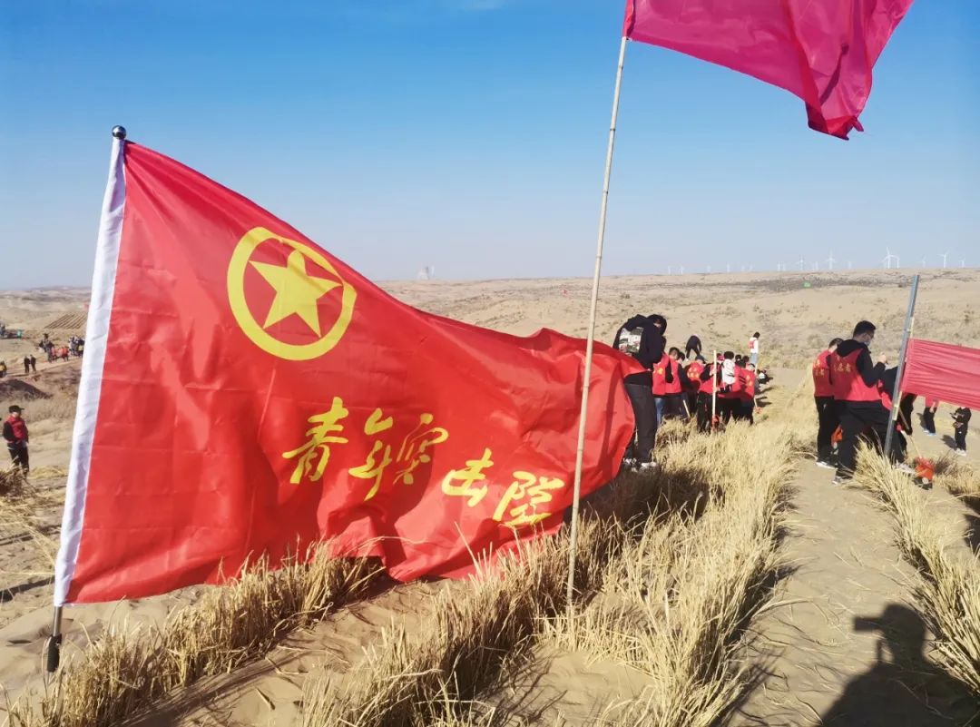 圖丨中色東方組織團員青年在毛烏素沙地扎設草方格