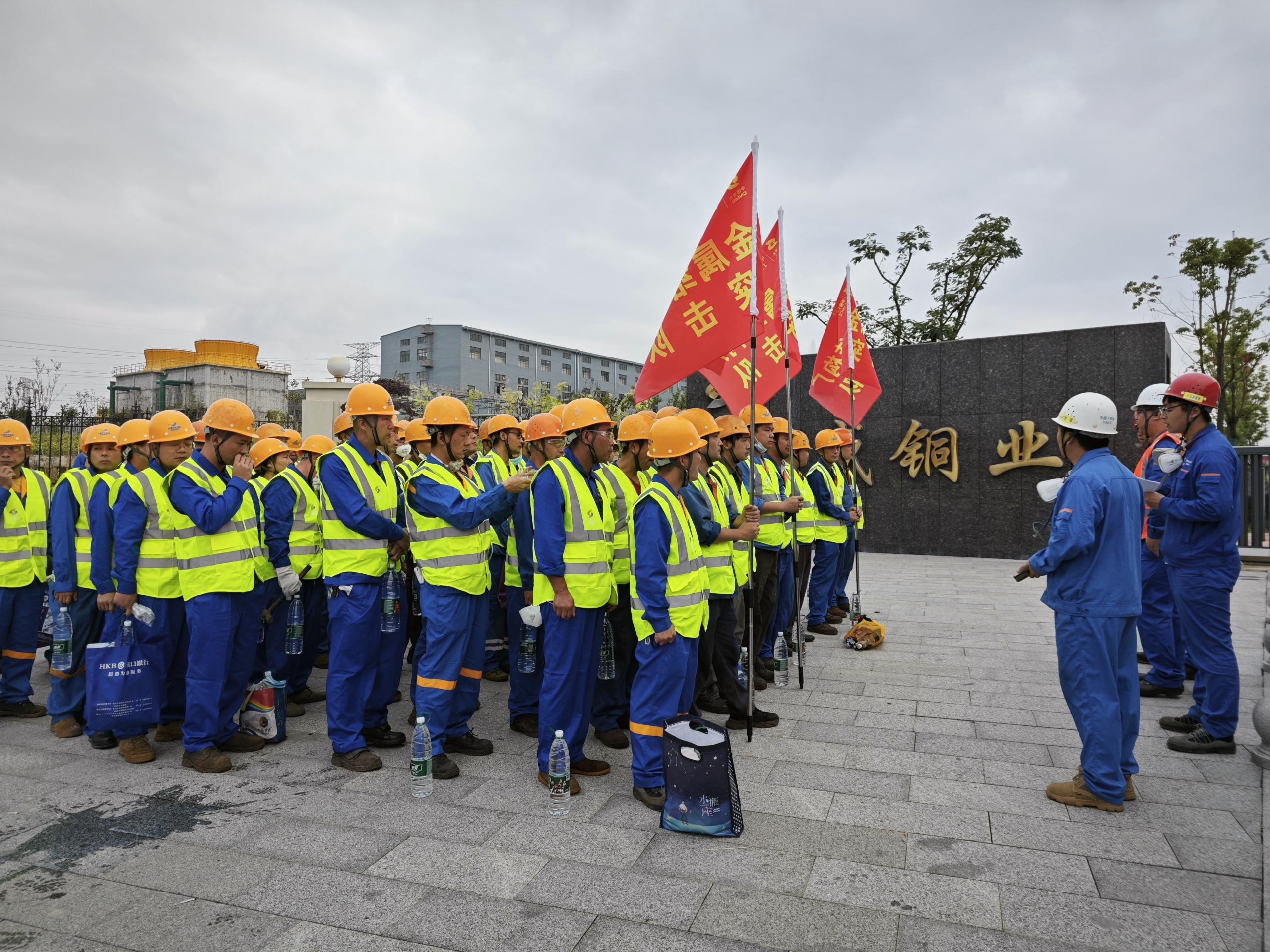 圖丨中色十五冶三公司金屬結構廠青年突擊隊進行陽新弘盛項目爐體搶修動員
