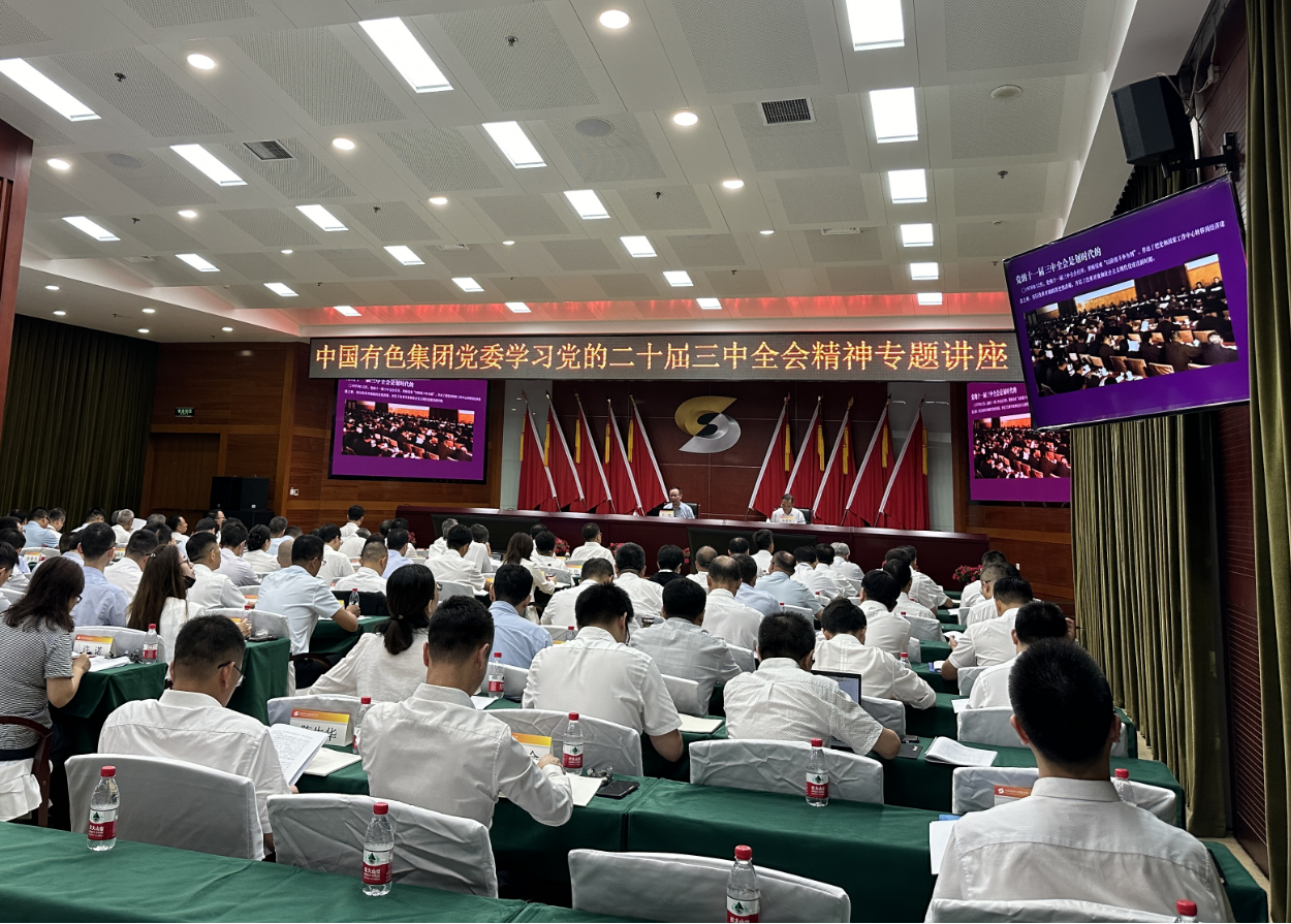 7月28日,中國有色集團黨委舉辦學(xué)習(xí)黨的二十屆三中全會精神專題講座,組織各級黨員領(lǐng)導(dǎo)干部深入學(xué)習(xí)領(lǐng)會黨的二十屆三中全會的重大歷史意義、現(xiàn)實意義、戰(zhàn)略意義,深刻把握《決定》的豐富內(nèi)涵和精神實質(zhì),為全面貫徹落實全會精神筑牢思想基礎(chǔ)。