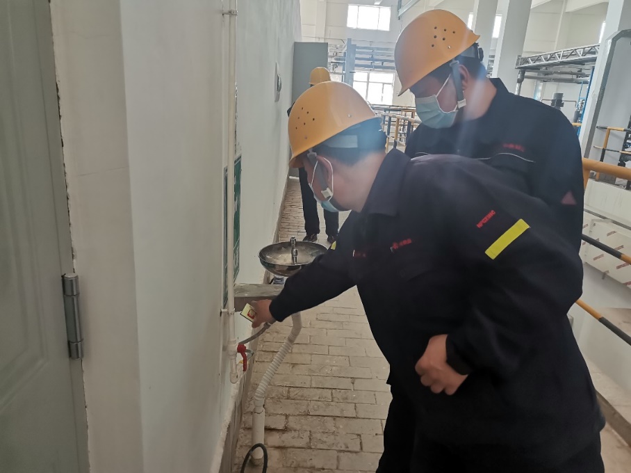 中色鋅業突擊隊員在廢水治理膜處理車間檢測閥門