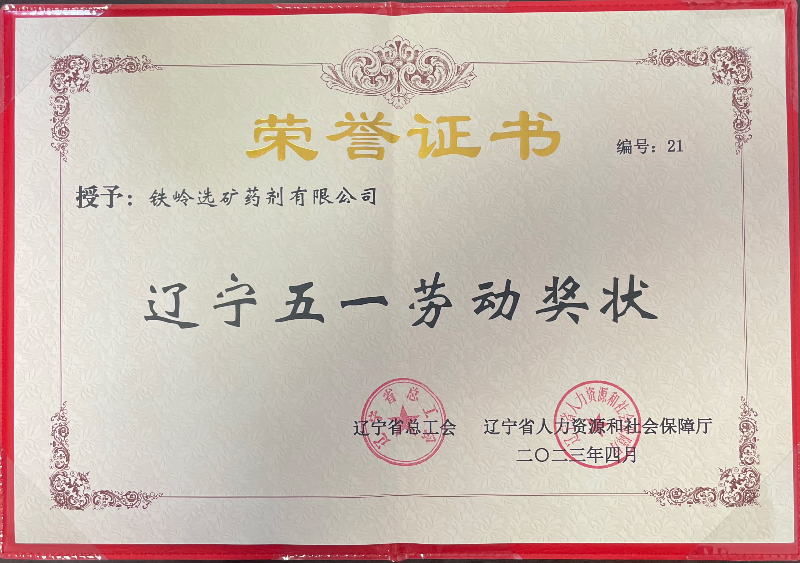 五一國慶節到來之際,中國有色集團沈陽礦業投資有限公司(簡稱中色沈礦)所屬鐵嶺藥劑捷報頻傳,在“2023遼寧省五一勞動獎表彰大會”上鐵嶺藥劑榮獲“遼寧五一勞動獎狀”榮譽稱號;中華全國總工會決定命名鐵嶺藥劑技術中心“全國工人先鋒號”。