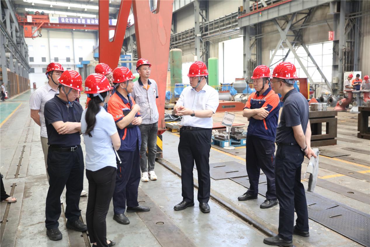 在中色泵業(yè),奚正平書記一行現(xiàn)場考察了機加工區(qū),詳細了解了隔膜泵核心部件曲軸的加工周期、精度要求等,并詢問其材質(zhì)、外供廠家、供貨價格等情況;在三坐標測量室詢問了測量精度,強調(diào)首先要保證加工精度;在中裕橡膠隔膜生產(chǎn)車間向現(xiàn)場負責人了解了橡膠改性的生產(chǎn)過程、隔膜使用壽命;在結(jié)構(gòu)工區(qū)就鋼板供貨來源、下料、焊接和熱處理等箱體制造全過程進行了一一了解,并基于調(diào)研情況,在產(chǎn)品質(zhì)量、產(chǎn)品設計、降低成本、正風肅紀等方面作出下一步工作部署。